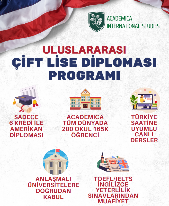 -Amerika’yagitmeden,okuduğunuzlisenindiplomasıylabirlikte, ABD’nin en seçkin liselerinden biri olan “Academica International Studies“okulunun diplomasını alabileceğinizi;